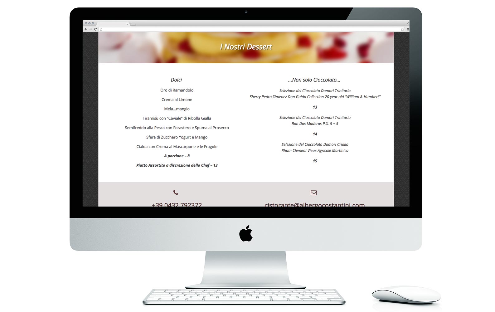 Specialisti inoltre nel “catering & banqueting“, Costantini presenzia ogni anno a centinaia di eventi grazie a una scuola fatta di sani principi, di passione per il proprio mestiere, curiosità verso il nuovo e continua ricerca per migliorare. Navigando nel nuovissimo sito internet – realizzato da TreAtiva in collaborazione con Alessia Della Rossa – l’utente potrà immergersi tra immagini bellissime e conoscere la storia e l’unicità di questa famiglia, potrà ordinare direttamente dal sito la propria cena e riservare un tavolo o una camera, potrà richiedere informazioni ed iscriversi alla Newsletter che lo terrà sempre informato sui numerosi eventi organizzati. Buona navigazione…