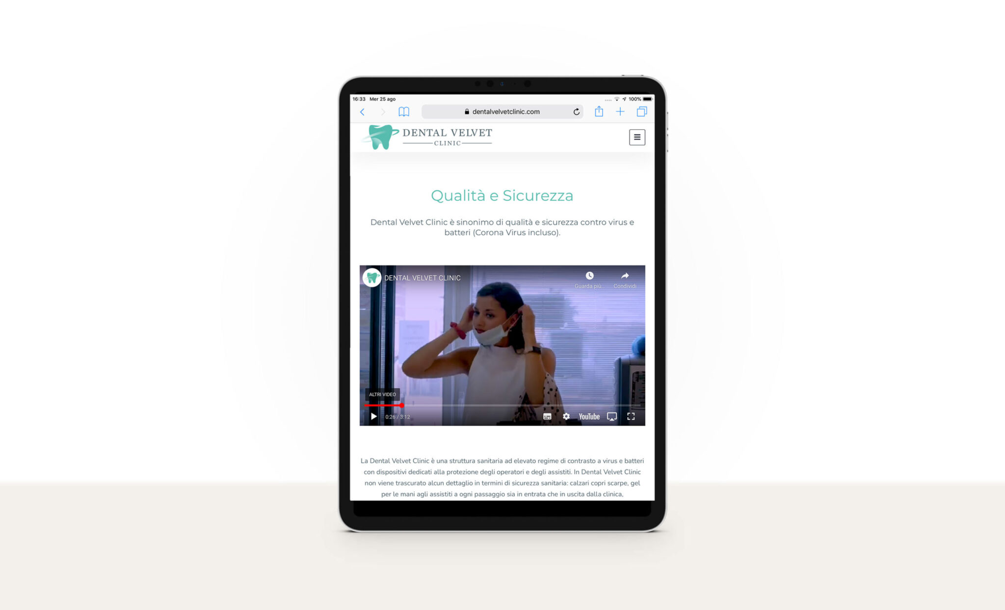È per questo che, fin dall’inizio del nostro studio sul logotipo aziendale per poi passare ai successivi e logici applicativi, sito internet su tutti, abbiamo cercato di trasmettere questa loro filosofia, questo credo! Oggi la Dental Velvet Clinic, grazie a questo modo di pensare la propria professionalità, si pone su livelli qualitativi assoluti e può farlo anche perchè supportata da un’immagine aziendale sicuramente all’altezza …come il video qui sotto, voi che ne pensate?