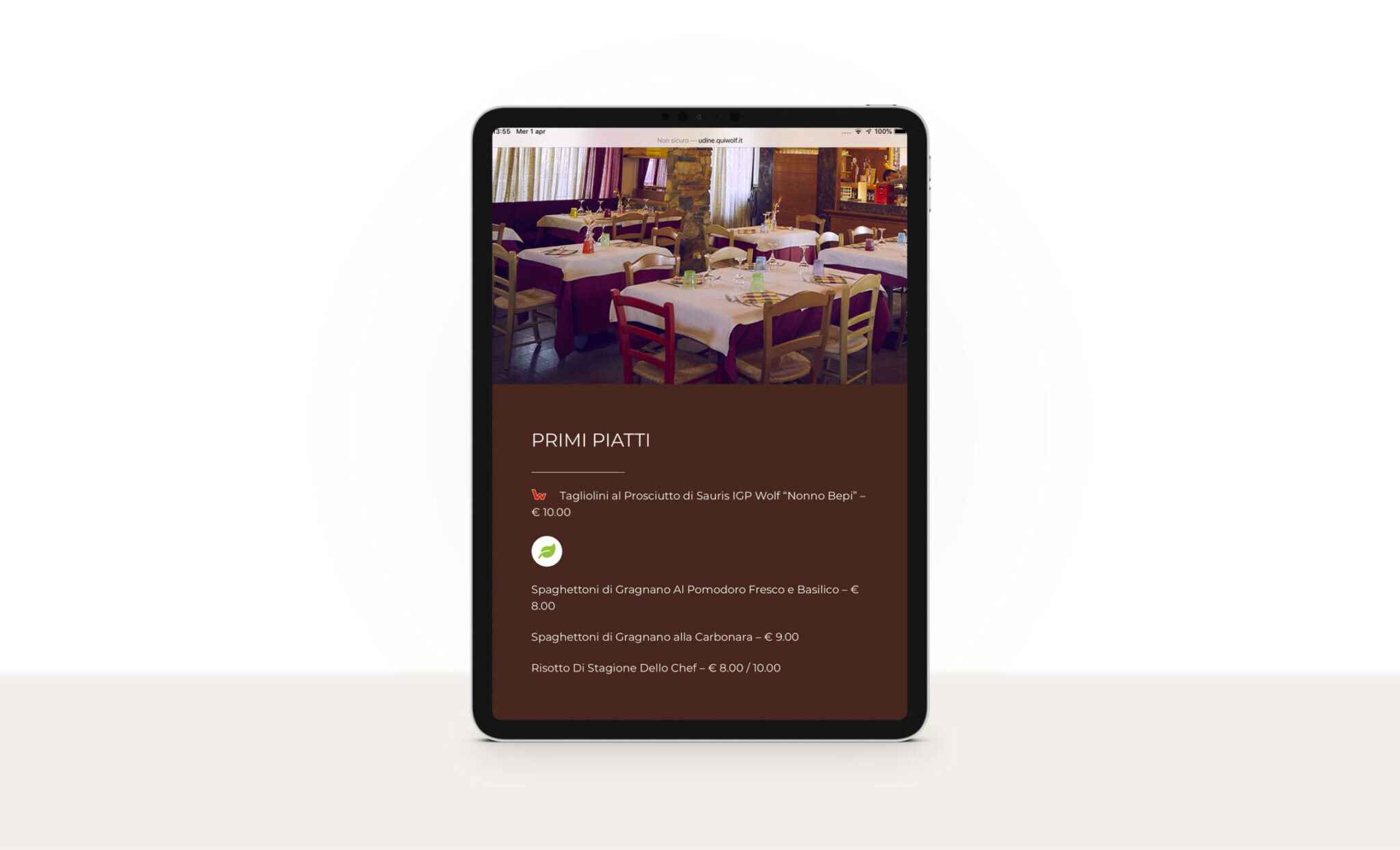 La cucina ha il suo punto di forza nelle bistecche, fiorentine o costate che siano: carni provenienti da allevamenti selezionati, frollate al punto giusto, grigliate con sapiente cura. Ma il menu propone anche antipasti, primi e secondi piatti della tradizione friulana e non solo, che ruotano seguendo la stagionalità. La carta dei vini si basa su una accurata selezione di vini del Friuli Venezia Giulia, affiancati da una rassegna di etichette di rossi toscani, siciliani e di altre regioni italiane.”