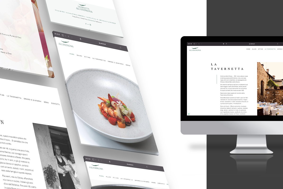 Siamo entusiasti di presentare il nostro ultimo lavoro per il cliente Tavernetta all’Androna, ristorante di grande livello situato nel cuore del centro storico di Grado (GO), per il quale siamo partiti dal servizio fotografico dei piatti, per poi ragionare sul restyling del visual grafico, volto a valorizzarne la bellezza e l’eleganza, e su tutta la programmazione del sito internet stesso.